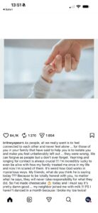 Një nga deklaratat më tronditëse të postimit ishte pranimi se ndihet “me fat që është gjallë”, një fjali e shkurtër, por me peshë të madhe, që reflekton pasojat psikologjike të viteve të kontrollit dhe presionit familjar. Britney flet edhe për besimin e saj te Zoti, duke reflektuar mbi jetën dhe mënyrën e saj të paparashikueshme, por shpreh hapur zhgënjimin ndaj atyre që, sipas saj, nuk kanë marrë kurrë përgjegjësi për dëmin e shkaktuar.