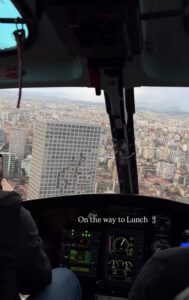 Këtë herë, ajo ka vendosur të shmangë trafikun dhe rrugët e mbipopulluara të qytetit, duke zgjedhur një mënyrë transporti krejtësisht të pazakontë për një dalje të zakonshme: helikopterin.