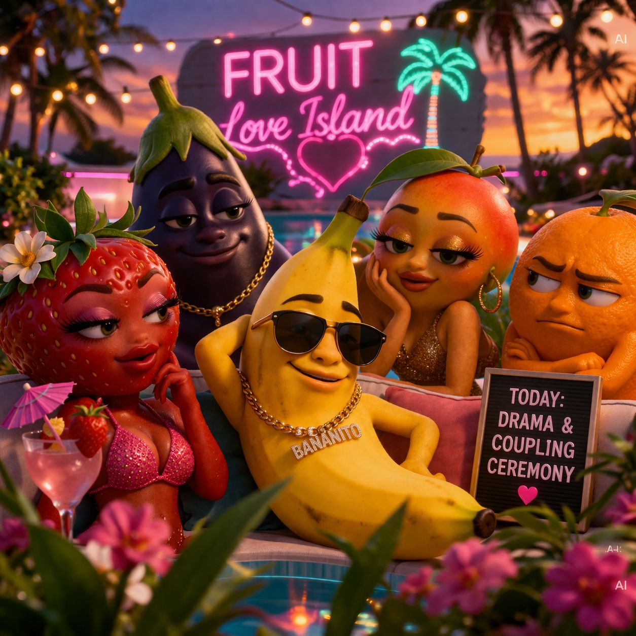 Në qendër të këtij fenomeni është seria “Fruit Love Island”, e frymëzuar nga Love Island, ku personazhe si Bananito (po, një banane që flet ) bëhen protagonistë të historive romantike, xhelozive dhe skandaleve.