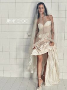 Me titullin “The Rules of Engagement”, Jimmy Choo sjell një manifest për vajzën që nuk do të duket “siç duhet”, por siç ndjen. Në qendër të fushatës është Gabbriette, një nuse e ardhshme që nuk kërkon përralla, por prezencë. Harro perlat klasike dhe siluetat e sigurta. Këtu kemi taka sateni të kuqe, shkëlqim që bie në sy dhe një qëndrim që thotë: “Kjo është dita ime.”