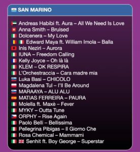 Lista e finalistëve të Festivalit të Këngës në San Marino është bërë publike dhe duket se emri i Sheila Haxhiraj nuk figuron asgjëkundi. Këngëtarja, e cila doli e treta në Festivalin e Këngës në Shqipëri, kishte provuar të sfidonte fatin jashtë kufijve duke marrë pjesë në garën e San Marinos.