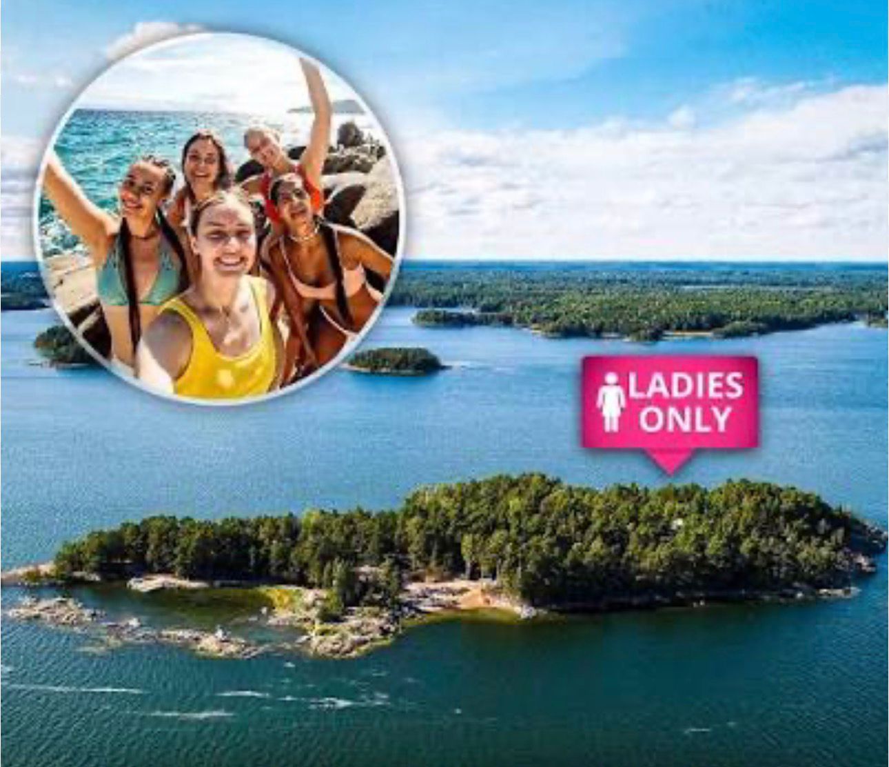 SuperShe Island në Finlandë është një retreat privat i blerë nga një sipërmarrës miliarder dhe konceptuar si një oazë vetëm për gra. Burrat nuk lejohen, duke krijuar një hapësirë të përqendruar te mirëqenia, lidhja personale dhe fuqizimi i grave.