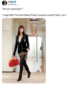 Fansat e modës dhe kinemasë janë gati për një surprizë të veçantë me “The Devil Wears Prada 2”. Përveç se filmi pritet të rikthejë elegancën dhe dramat e jetës në industrinë e modës, AMC ka zbuluar një aksesor të pazakontë që ka tërhequr menjëherë vëmendjen e publikut, një bucket popcorn që në fakt është një çantë dore luksoze.